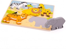Wykonana z wysokiej jakości, odpowiedzialnie pozyskiwanego drewna i zaprojektowana tak, aby spełniała aktualne europejskie normy bezpieczeństwa. Puzzle zawierają 5 dużych elementów z motywami safari, które dostarczają dzieciom radości z odkrywania i nauki.
