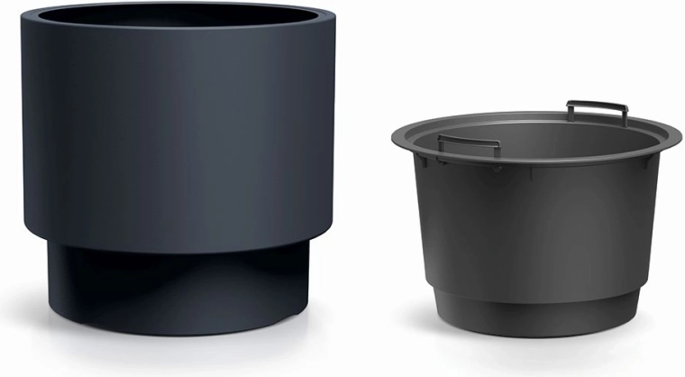 Wewnętrzny wkład zintegrowany z uchwytami ułatwia przesadzanie, czyszczenie i sezonowe zmiany nasadzeń. Jednocześnie oszczędza ilość użytego podłoża, co stanowi praktyczne i ekonomiczne rozwiązanie dla każdego ogrodnika.