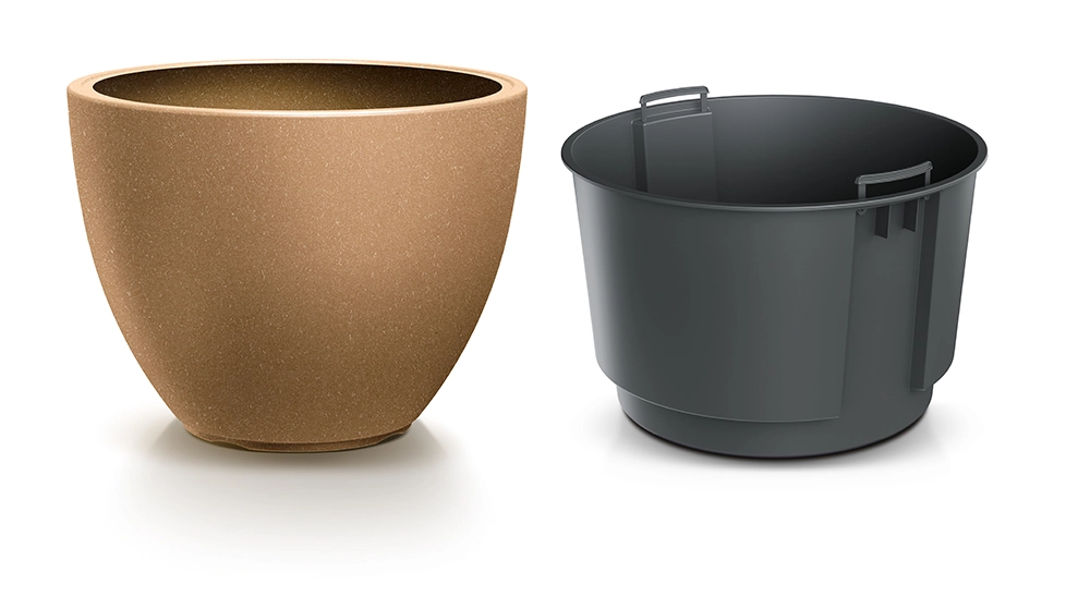 Wyjmowany liner ułatwia podlewanie, przesadzanie i pielęgnację, a także zmniejsza zużycie podłoża.