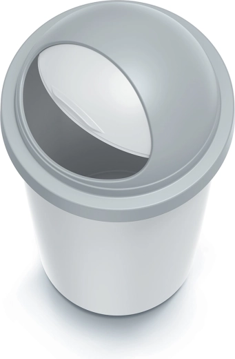 Szukasz funkcjonalnego i nowoczesnego rozwiązania do codziennych odpadów? Ten szary kosz o pojemności 30 l łączy praktyczny mechanizm składanej pokrywy do szybkiego wyrzucania śmieci oraz gładką powierzchnię ułatwiającą czyszczenie. Dzięki wytrzymałemu plastikowi jest lekki, ale stabilny, dlatego sprawdzi się w kuchni, łazience, biurze i mniejszych przestrzeniach.