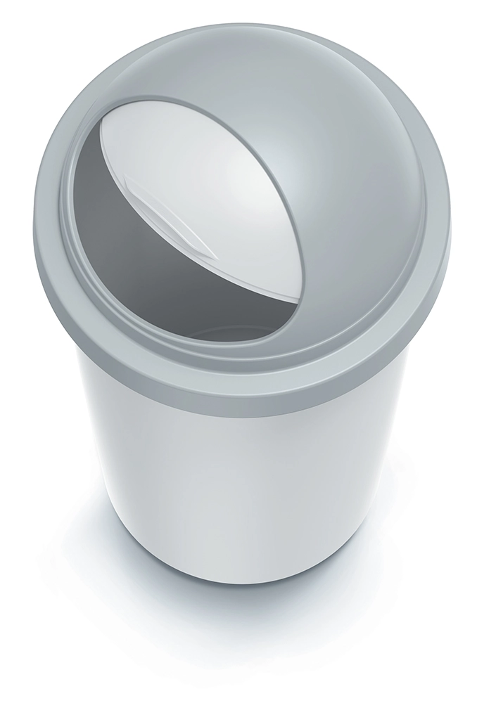 Pokrywa z mechanizmem składania umożliwia łatwe i higieniczne wyrzucanie odpadów bez zdejmowania pokrywy, a także pomaga ograniczyć rozprzestrzenianie się zapachów.