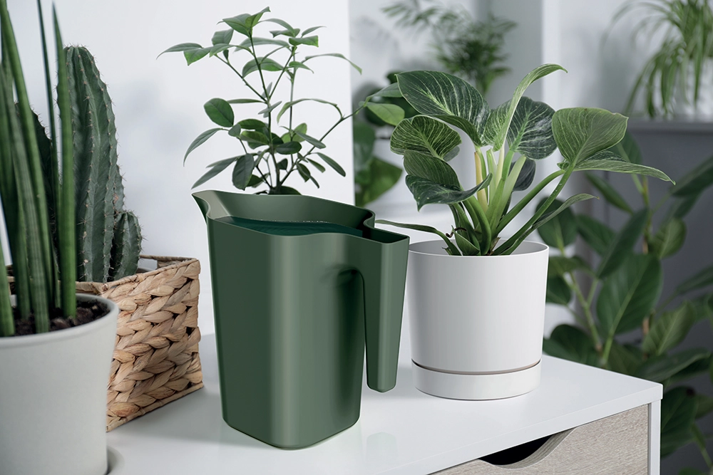 Oszczędny kształt łatwo mieści się na półce lub w szafce i świetnie komponuje się z nowoczesnym wystrojem wśród roślin domowych.