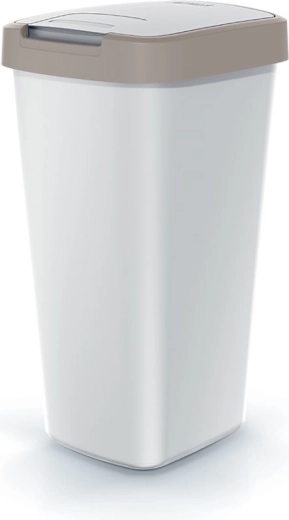 Stylowy kosz na śmieci o pojemności 25 l do domu i biura łączy praktyczne funkcje i ponadczasowy design. Wytrzymałe tworzywo ułatwia pielęgnację, dwie możliwości otwierania pokrywy zwiększają komfort, a kolorowa ramka pokrywy zapobiegająca zsuwaniu się worka zapewnia czystą i przejrzystą obsługę także podczas segregacji odpadów. Dzięki kompaktowym wymiarom zmieści się nawet w mniejszych przestrzeniach.