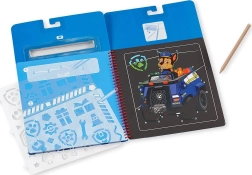 Pod czarną warstwą kryją się jaskrawe motywy PSI PATROL. Dzieci łatwo stworzą atrakcyjne obrazki bez potrzeby używania farb czy kleju.