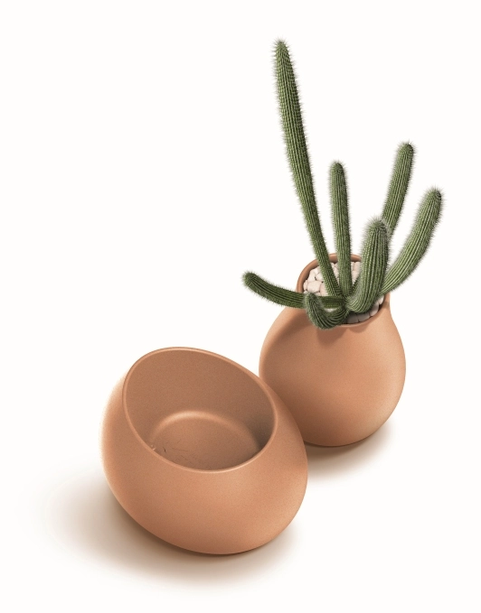 Obła, wazonowa sylwetka oraz matowa tekstura nadają przestrzeni czysty, elegancki wygląd i podkreślają zieleń oraz dekoracyjne aranżacje.
