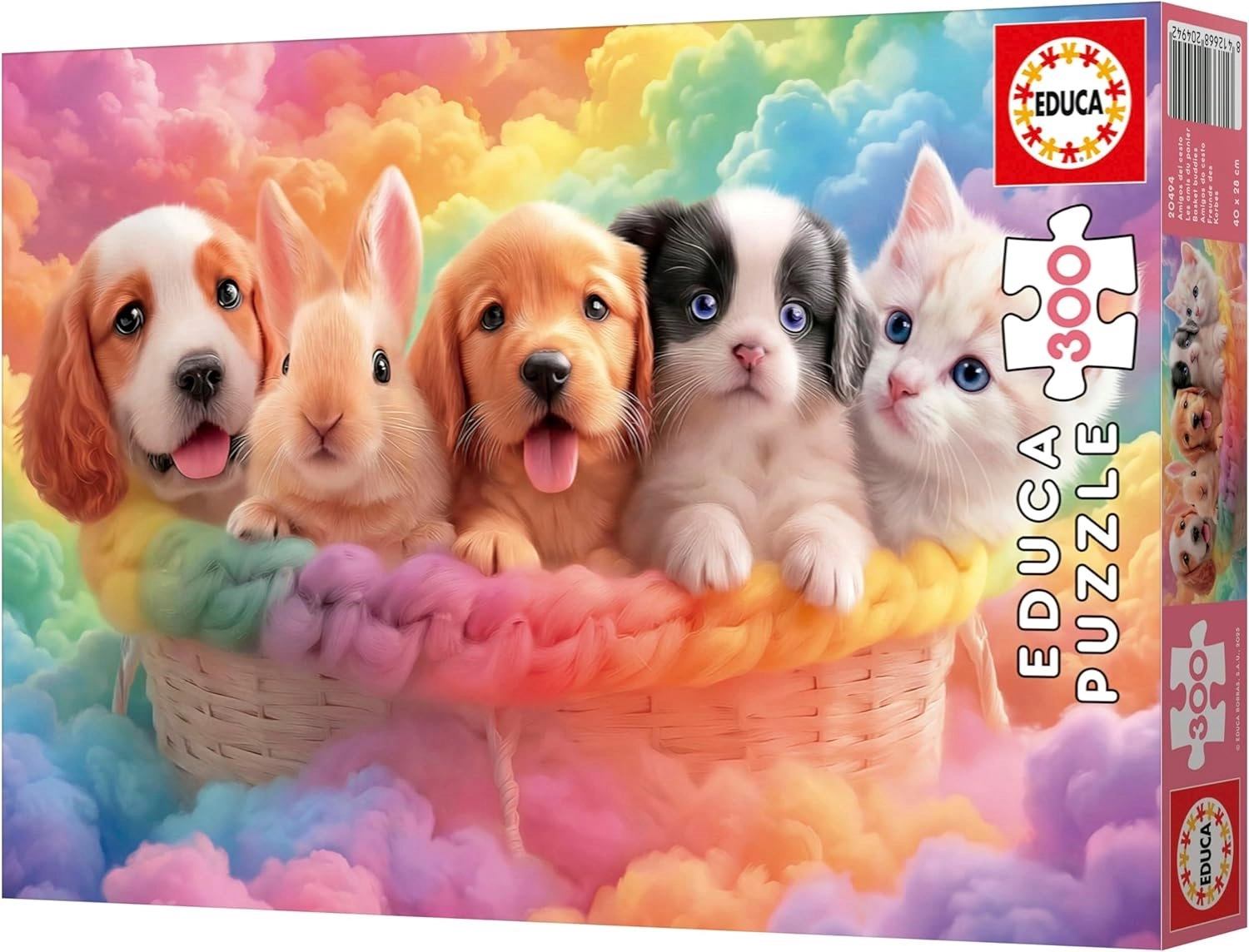 Ciesz się wspólnymi chwilami z uroczymi motywami i świetną jakością marki EDUCA. To puzzle z motywem Przyjaciele z koszyczka oferuje 300 elementów, a po ułożeniu ma wymiary ok. 40 × 28 cm – idealne dla dzieci i dorosłych miłośników układanek.