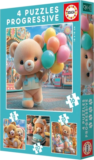 Odkryj zabawny zestaw progresywnych puzzli EDUCA 4w1 z uroczym motywem misia. Każde puzzle ma inny poziom trudności dzięki różnej liczbie elementów (12, 16, 20 i 25), dzięki czemu dzieci mogą stopniowo ćwiczyć małą motorykę, logiczne myślenie i cierpliwość. Idealne na pierwsze układanie dzięki solidnym, łatwym do chwytania elementom i kompaktowemu wymiarowi ok. 16 × 16 cm po ułożeniu.