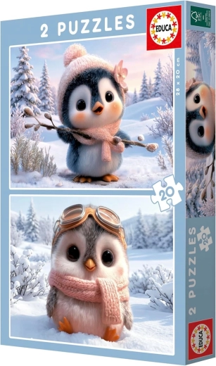 Odkryj magię układania z dwoma uroczymi motywami pingwinów w praktycznym secie 2×20 elementów. Dzieci poćwiczą koncentrację i koordynację ręka–oko, a jednocześnie doświadczą radości z ukończonego obrazka. Każde puzzle po ułożeniu mają około 28 × 20 cm, więc wygodnie mieszczą się na stole lub podkładce.
