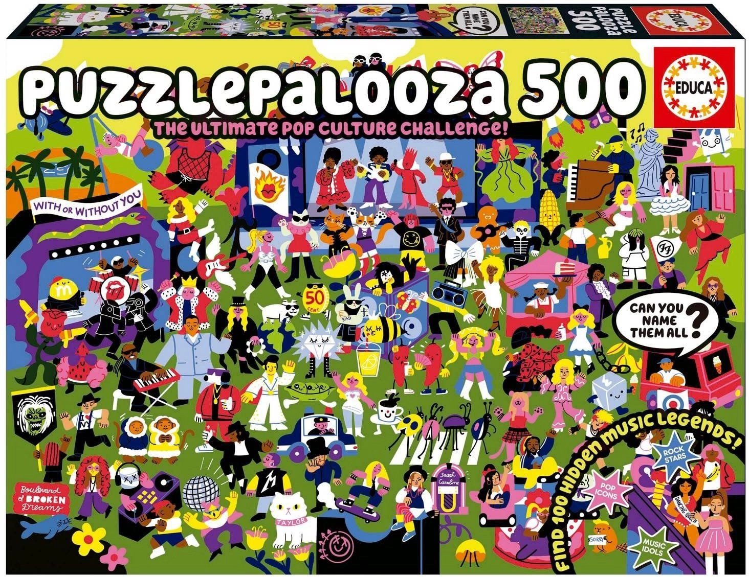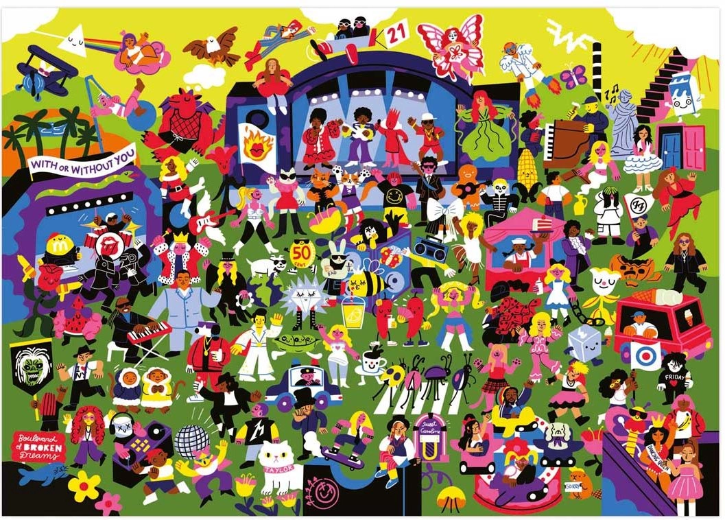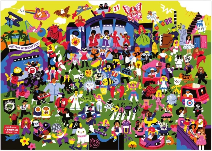 Znajdź czas dla siebie i rodziny z wciągającymi puzzlami EDUCA Puzzlepalooza. Po ułożeniu czeka Cię wyjątkowa gra detektywistyczna: w ilustracji ukryto 100 odniesień do słynnych muzyków i zespołów. Dzięki dołączonemu plakatowi możesz dać się poprowadzić albo podjąć wyzwanie bez podpowiedzi.