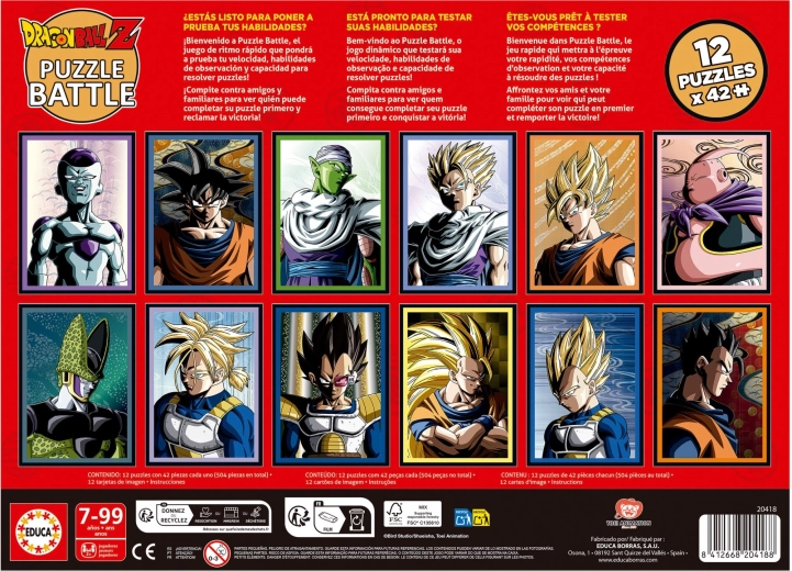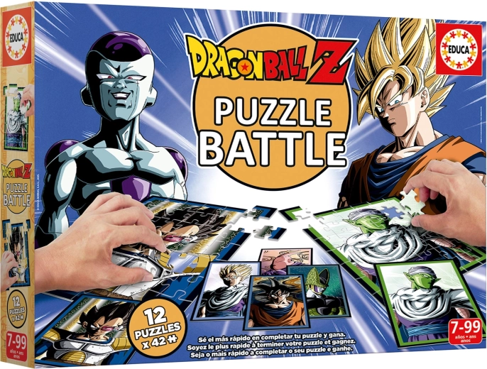 Ciesz się emocjonującą bitwą puzzle z motywem DRAGON BALL Z od marki Educa. Zestaw zawiera 12 oddzielnych układanek po 42 elementy oraz 12 kart z wzorami do szybkiego, wyścigowego układania. Świetny do rozwoju koordynacji ręka–oko, szybkości, cierpliwości i spostrzegawczości – idealny do pojedynków z przyjaciółmi lub rodziną.