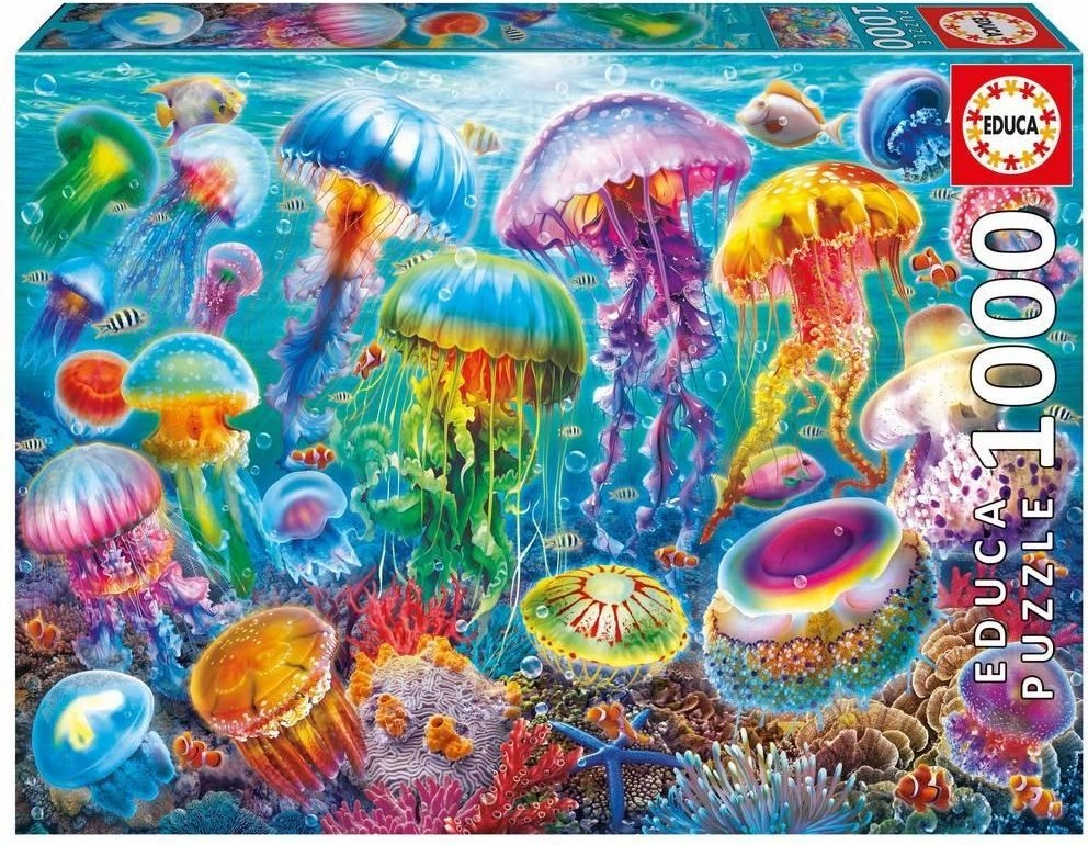Odkryj kojący świat morskich stworzeń z tymi wysokiej jakości puzzlami. Czeka na Ciebie 1000 elementów z zachwycającym motywem meduz, płynne układanie oraz darmowy klej w zestawie do łatwego utrwalenia gotowego obrazu.