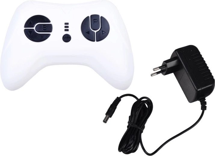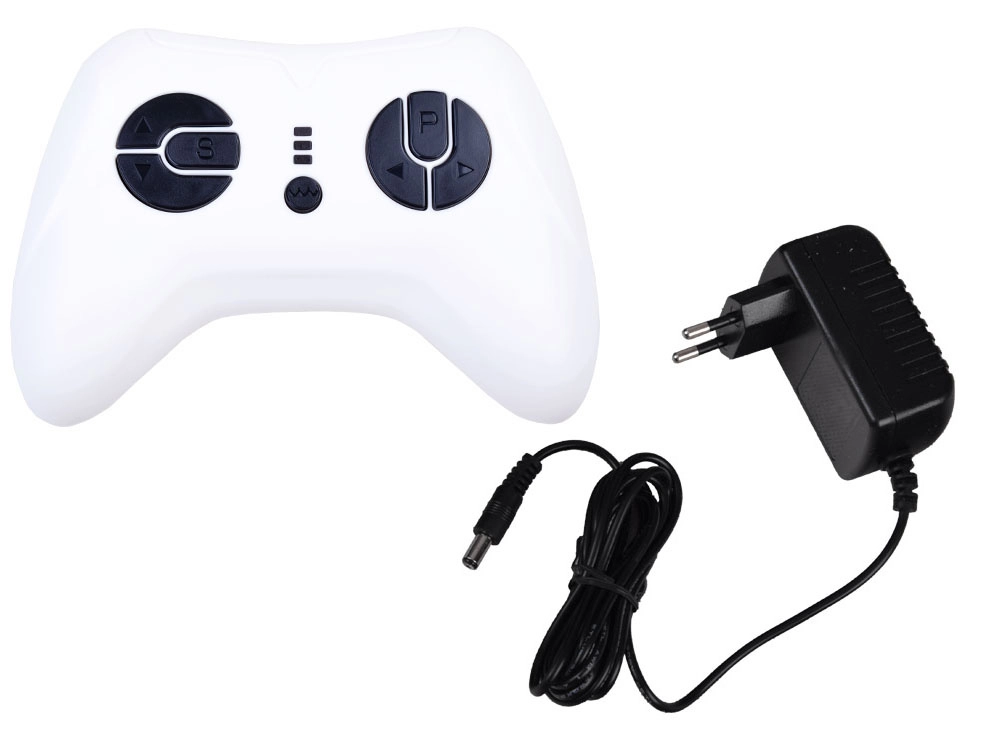 Rodzicielski pilot 2,4 GHz, przełączanie trybu manualnego/RC, światła LED, przycisk start/stop z dźwiękiem silnika oraz panel z USB, microSD i MP3 do ulubionych utworów.