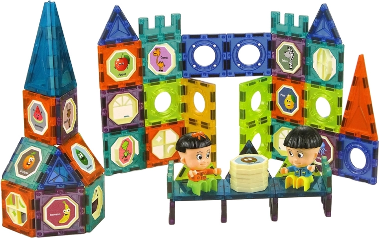Magnetyczne klocki zapewniają godziny wartościowej zabawy dla dzieci i rodziców. Dzięki mocnym magnesom i praktycznym zatrzaskom można z łatwością tworzyć stabilne budowle 3D – od bajkowego zamku po miniaturowe wesołe miasteczko z diabelskim młynem. Dzieci mogą podążać za ilustrowaną instrukcją lub swobodnie eksperymentować, rozwijając wyobraźnię.