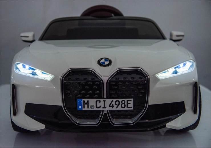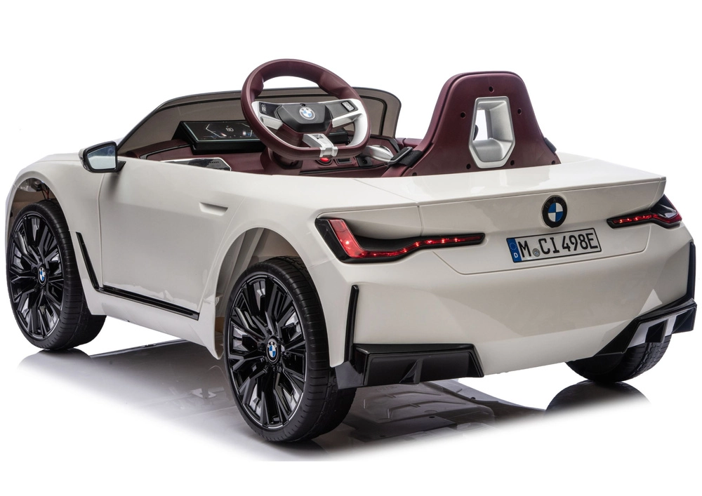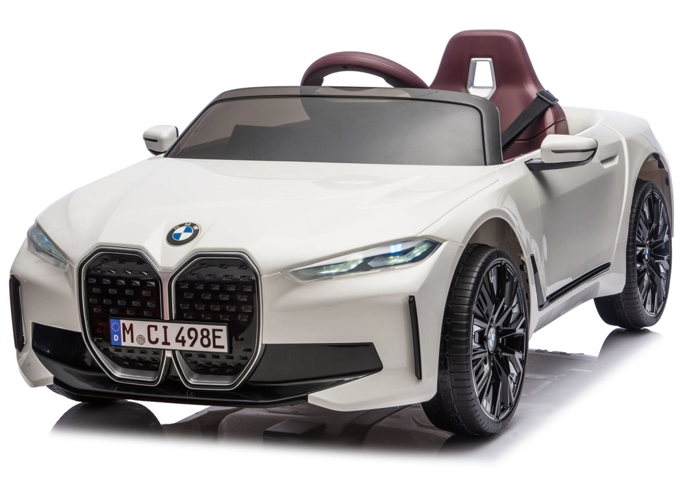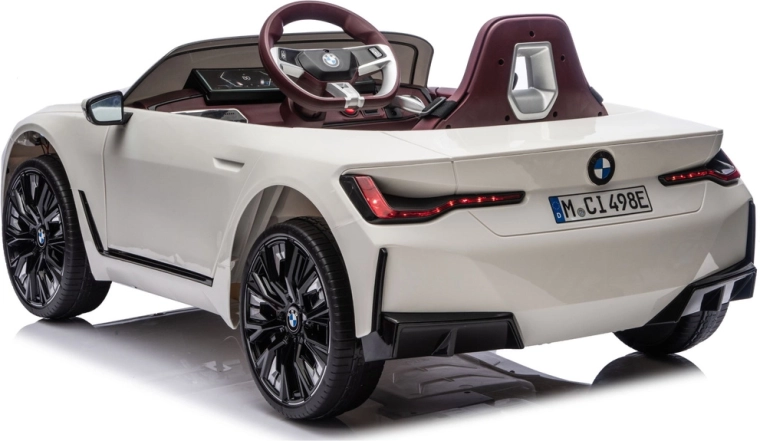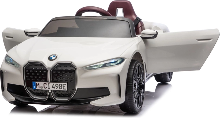 Stylowy dziecięcy elektryczny samochodzik BMW i4 4x4 w eleganckim białym kolorze oferuje realistyczne wrażenia z jazdy, bezpieczne siedzenie i solidną konstrukcję. Dzięki sportowemu designowi, dopracowanym reflektorom i otwieranym drzwiom mali kierowcy będą się świetnie bawić w domu i na zewnątrz.