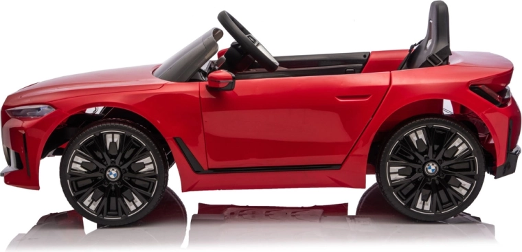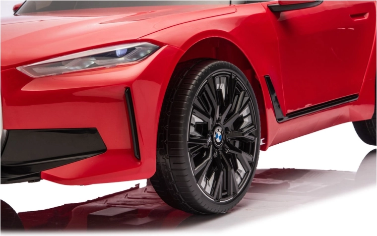 Stylowy elektryczny samochodzik BMW i4 4x4 w eleganckim czerwonym kolorze ucieszy małych kierowców realistycznym wyglądem i bezpieczną jazdą. Oferuje mocny napęd 4x4, otwierane drzwi, wygodne siedzenie z pasy bezpieczeństwa oraz dopracowane reflektory, grill i koła, zapewniając autentyczne wrażenia z jazdy.