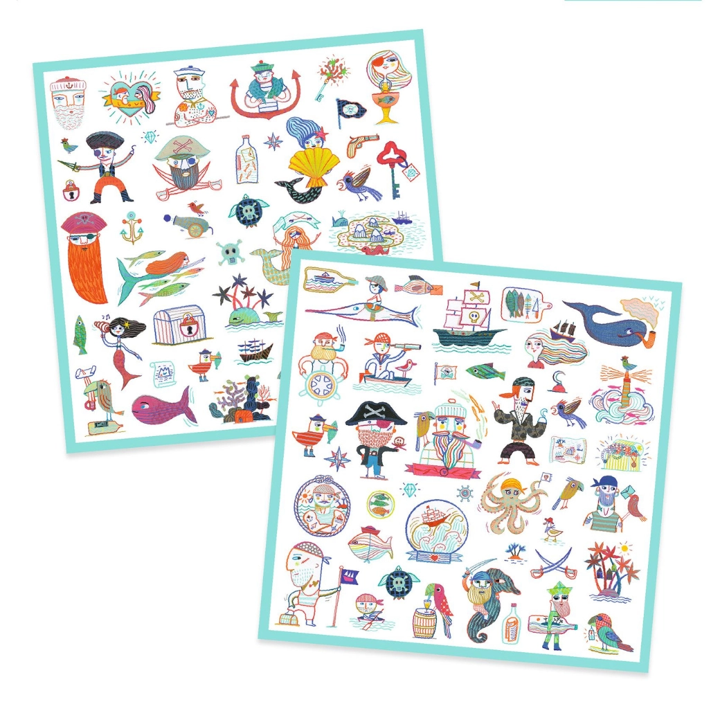 Odkryj świat piratów z zestawem naklejek, które pobudzają wyobraźnię i twórczą zabawę. Dzieci mogą ozdabiać zeszyty, kartki z życzeniami, pamiętniki lub tworzyć własne scenki z piratami, skarbami i statkami. Naklejki łatwo się przyklejają i w razie potrzeby ostrożnie odklejają z większości gładkich powierzchni.