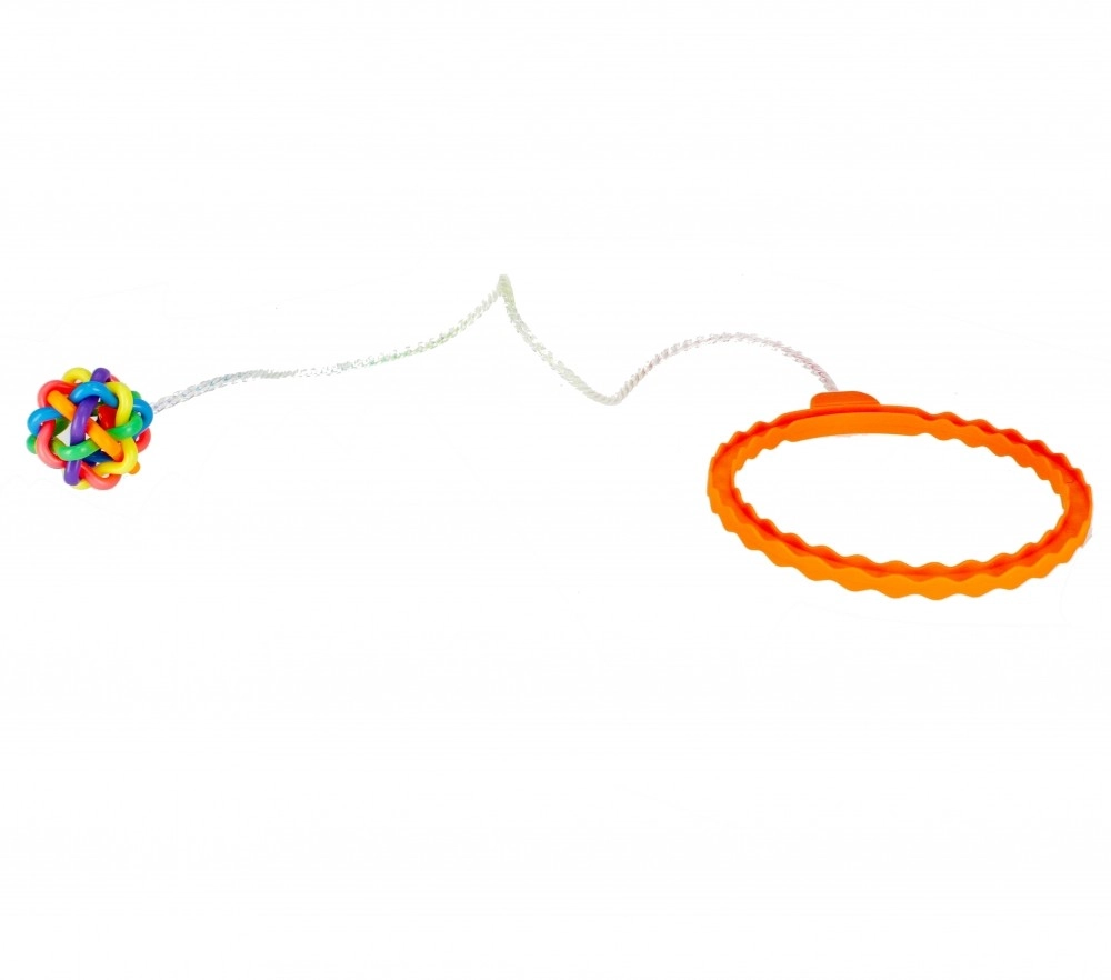 Jaskrawe kolory dla lepszej widoczności oraz lekka plastikowa obręcz z piłeczką na sznurku dla łatwego rozkręcania i kontroli.