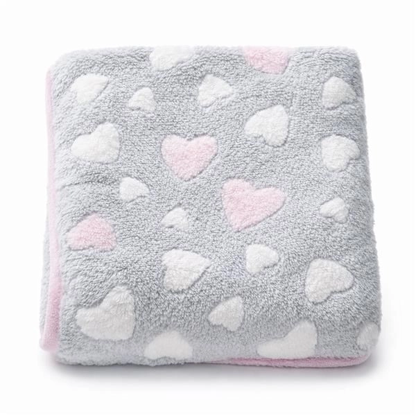 Dwustronny kocyk New Baby w delikatnym różowym kolorze z serduszkami zachwyca niezwykłą miękkością i doskonałymi właściwościami izolacyjnymi. Jest lekki, łatwy do złożenia i świetnie sprawdzi się na co dzień – do wózka, fotelika samochodowego, łóżeczka, a także jako bezpieczne, miękkie podłoże do zabawy.