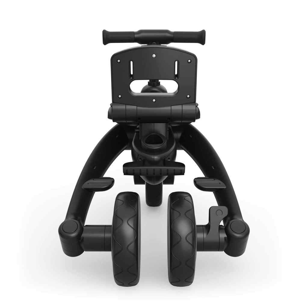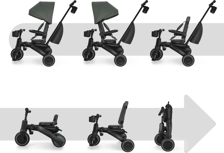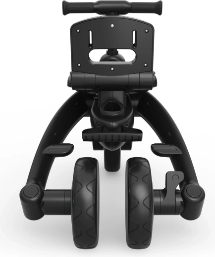 Złożysz w kilka sekund. Podwójna blokada zapobiega przypadkowemu rozłożeniu, a złożony trójkołowiec można stabilnie ustawić pionowo lub poziomo – idealny do mieszkania, windy i samochodu.