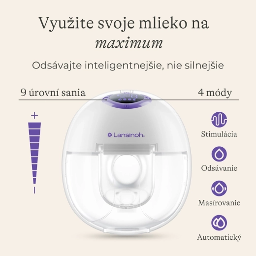 Lansinoh Handsfree Solo została zaprojektowana dla nowoczesnych mam, które chcą maksymalnie wykorzystać swój czas i swoje mleko. Dzięki kompaktowemu kształtowi dyskretnie mieści się w biustonoszu, umożliwia swobodę ruchu bez rurek, a jednocześnie oferuje mocne, lecz delikatne działanie z regulowanymi poziomami i trybami dla komfortowego odciągania.