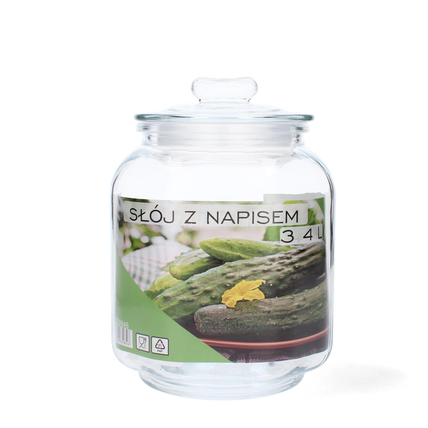 Praktyczny szklany słoik o pojemności 3,4 l ze szklaną pokrywką jest idealny do przechowywania domowych przetworów, przypraw oraz suchych produktów spożywczych. Dzięki szczelnemu zamknięciu żywność dłużej zachowuje świeżość i aromat. Dekoracyjny napis nadaje słoikowi stylu i staje się również ładnym dodatkiem do wnętrza. Duża pojemność 3,4 l, wysokiej jakości szkło oraz szczelna szklana pokrywka zapewniają bezpieczne i eleganckie przechowywanie.