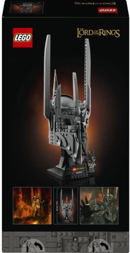 Wróć do mrocznych głębin Mordoru z ekskluzywnym zestawem, który zamieni twój stół lub półkę w galerię filmowych rekwizytów. Hełm Saurona w wydaniu LEGO Icons zachwyca wytwornymi kolcami, łuskowym, warstwowym pancerzem oraz metalicznie szarą kolorystyką, która wyróżnia się na kontrastowej, czarnej podstawce z tabliczką.