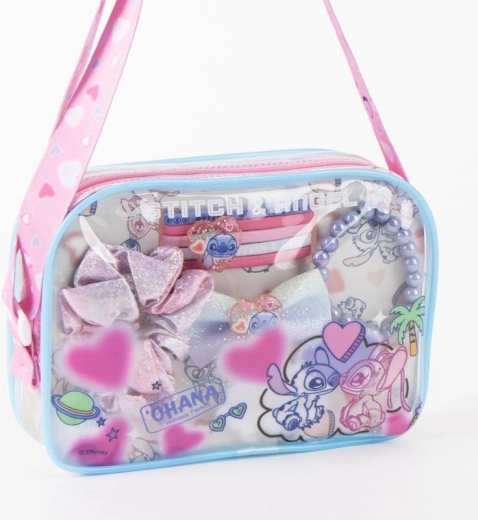 Ten uroczy zestaw akcesoriów do włosów z motywem STITCH zachwyci każdego fana zabawnych i kolorowych stylów. Dzięki praktycznej saszetce wszystkie elementy będziesz mieć zawsze pod ręką i bezpiecznie schowane – w domu i w podróży.