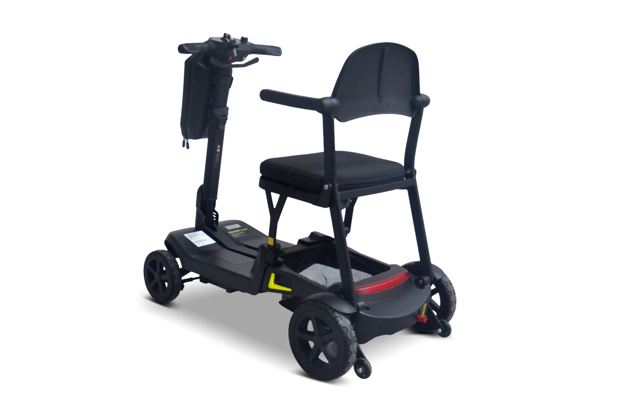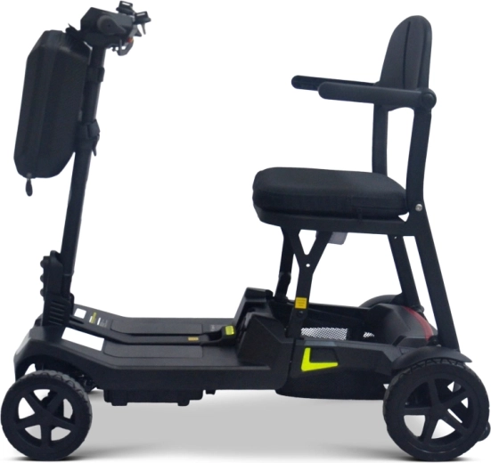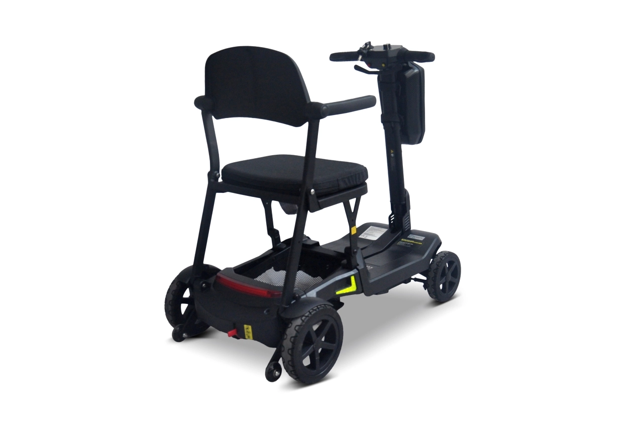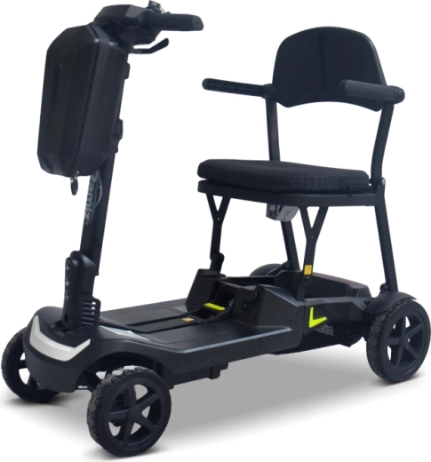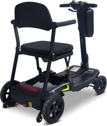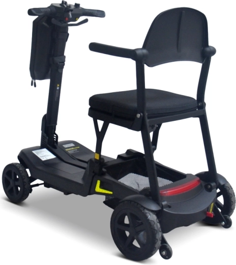 Kompaktowy i łatwy w prowadzeniu elektryczny skuter dla seniorów SeniorStar w eleganckim czarnym kolorze zapewnia bezpieczną jazdę dzięki stabilnej czterokołowej konstrukcji, oświetleniu LED oraz płynnej regulacji prędkości. Wyjmowana bateria Li‑ion 24 V 13 Ah ułatwia ładowanie, wygodne tapicerowane siedzisko z podłokietnikami gwarantuje komfort, a praktyczne schowki trzymają wszystko pod ręką.