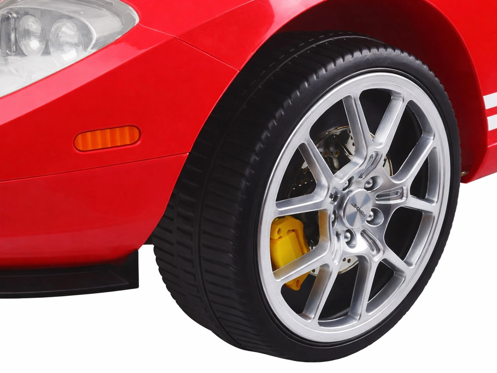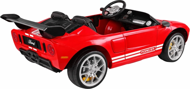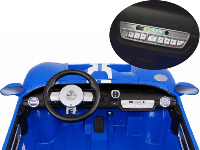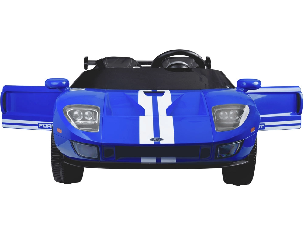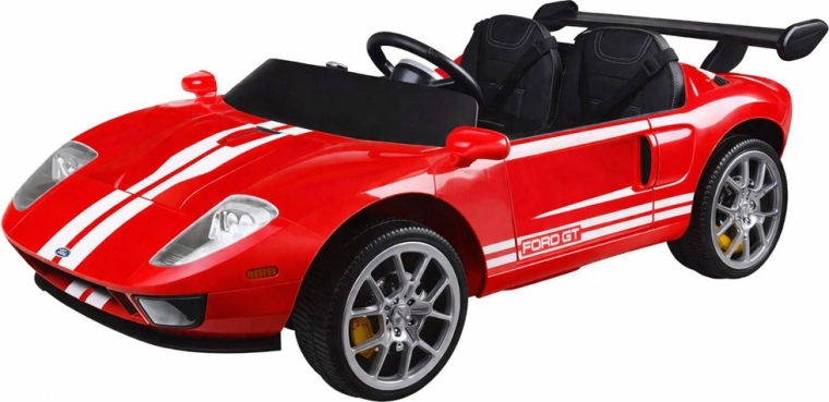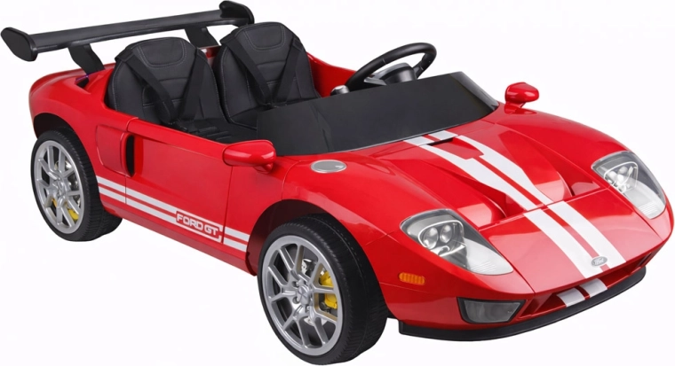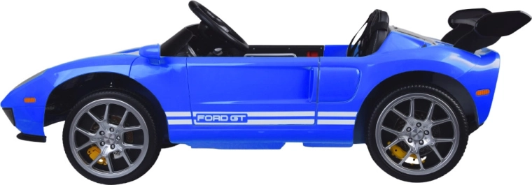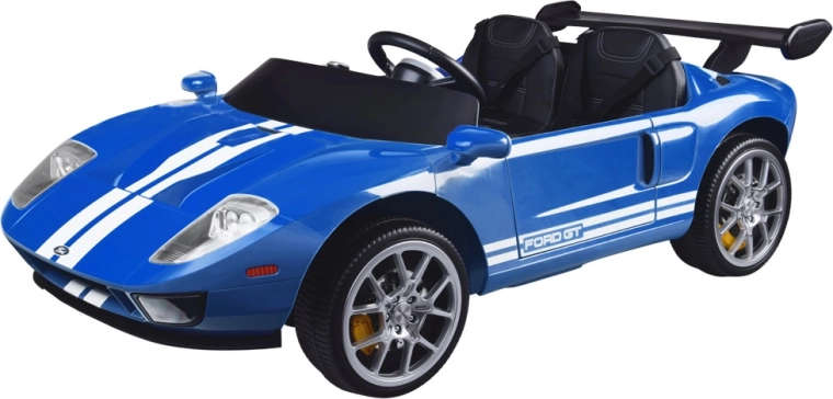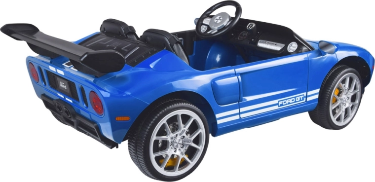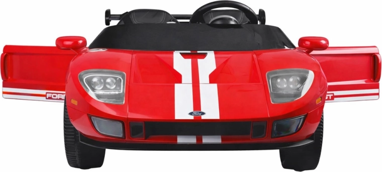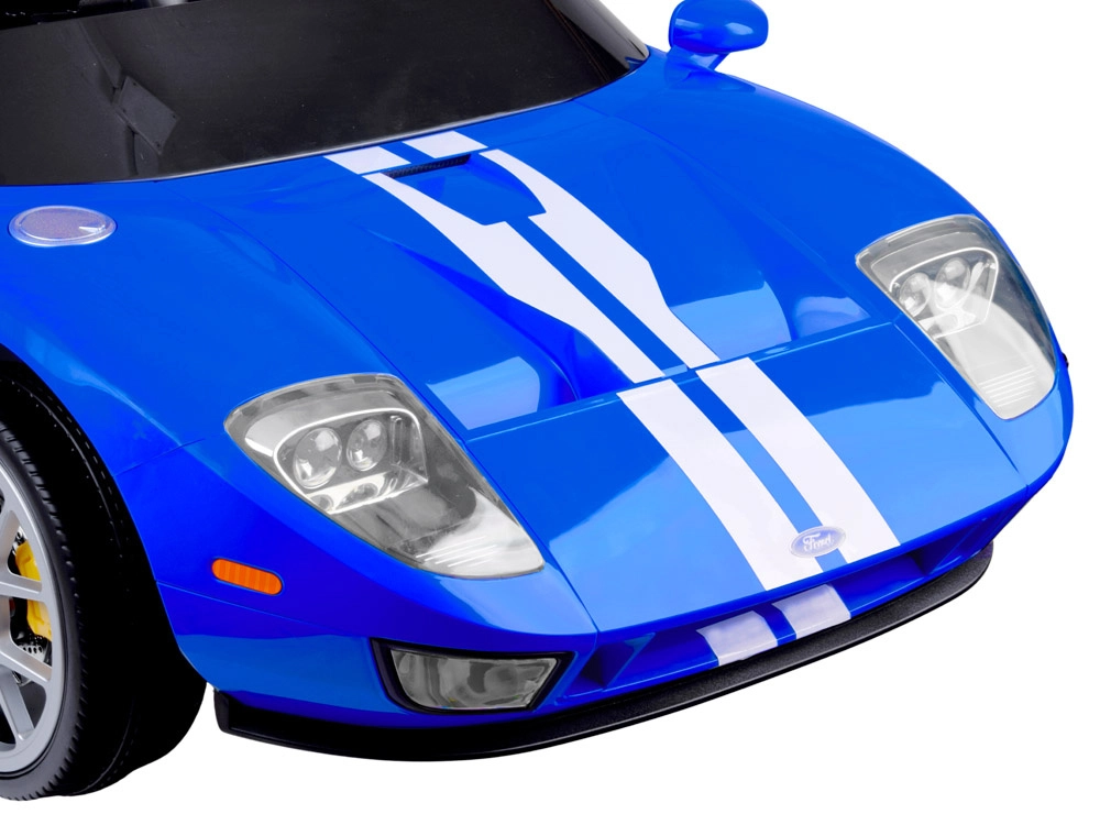 Sportowy elektryczny samochód FORD GT w licencjonowanym stylu legendarnego supersamochodu zachwyca dopracowaną karoserią, pasami wyścigowymi i realistycznymi detalami. Dwa oddzielne siedzenia z pasami bezpieczeństwa zapewnią wygodną jazdę rodzeństwa lub przyjaciół, a koła z pianki EVA i tylne amortyzatory zwiększą komfort na nierównościach.