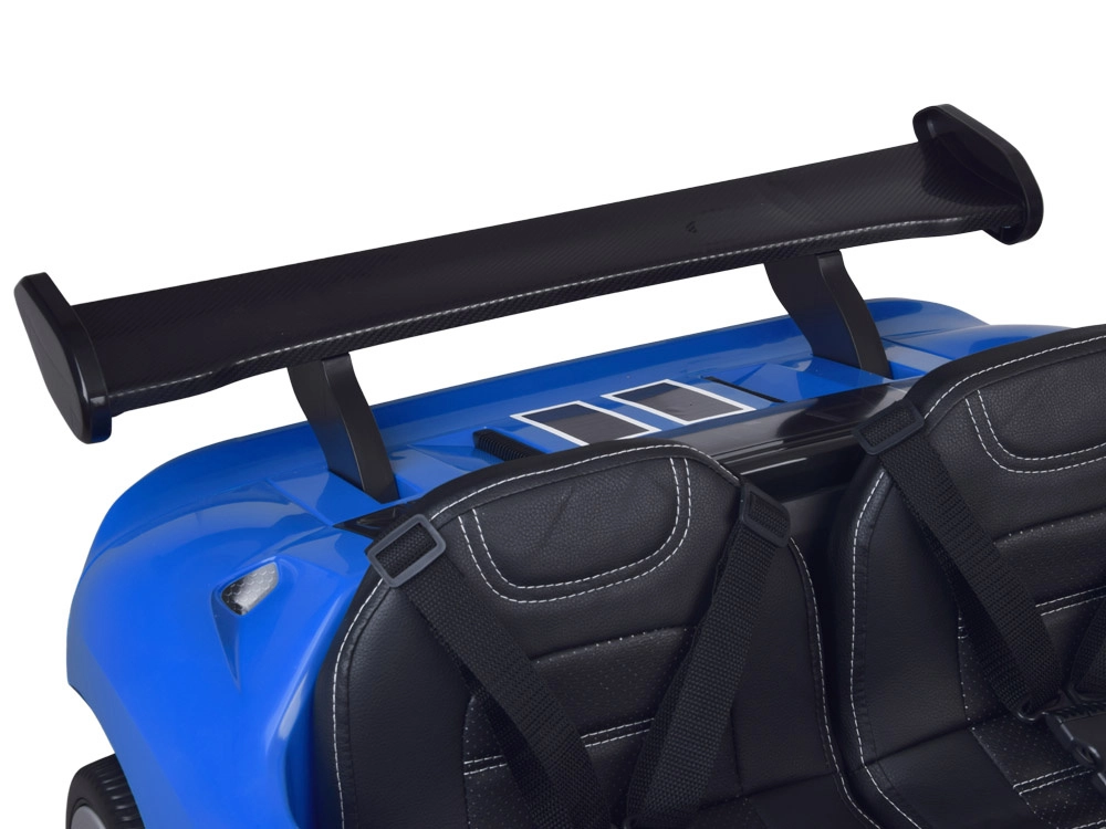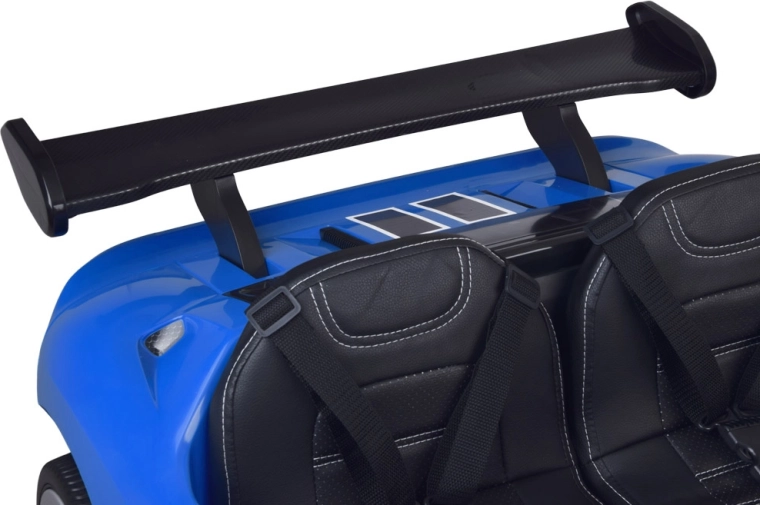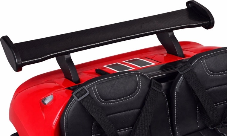 Dwuosobowe siedzenia z pasami bezpieczeństwa, otwierane drzwi i tylne zawieszenie zapewniają dzieciom wygodę i stabilność także podczas dłuższych przejażdżek.