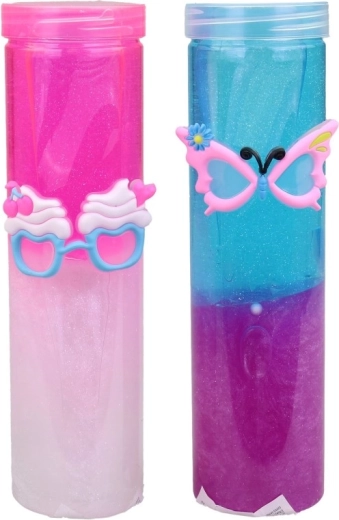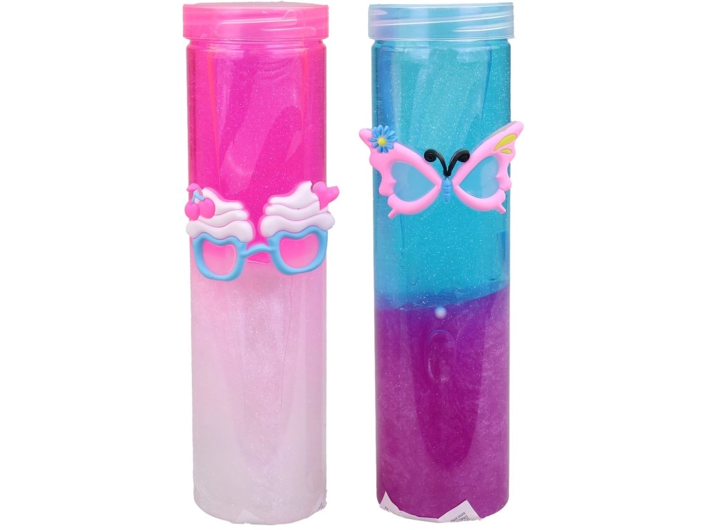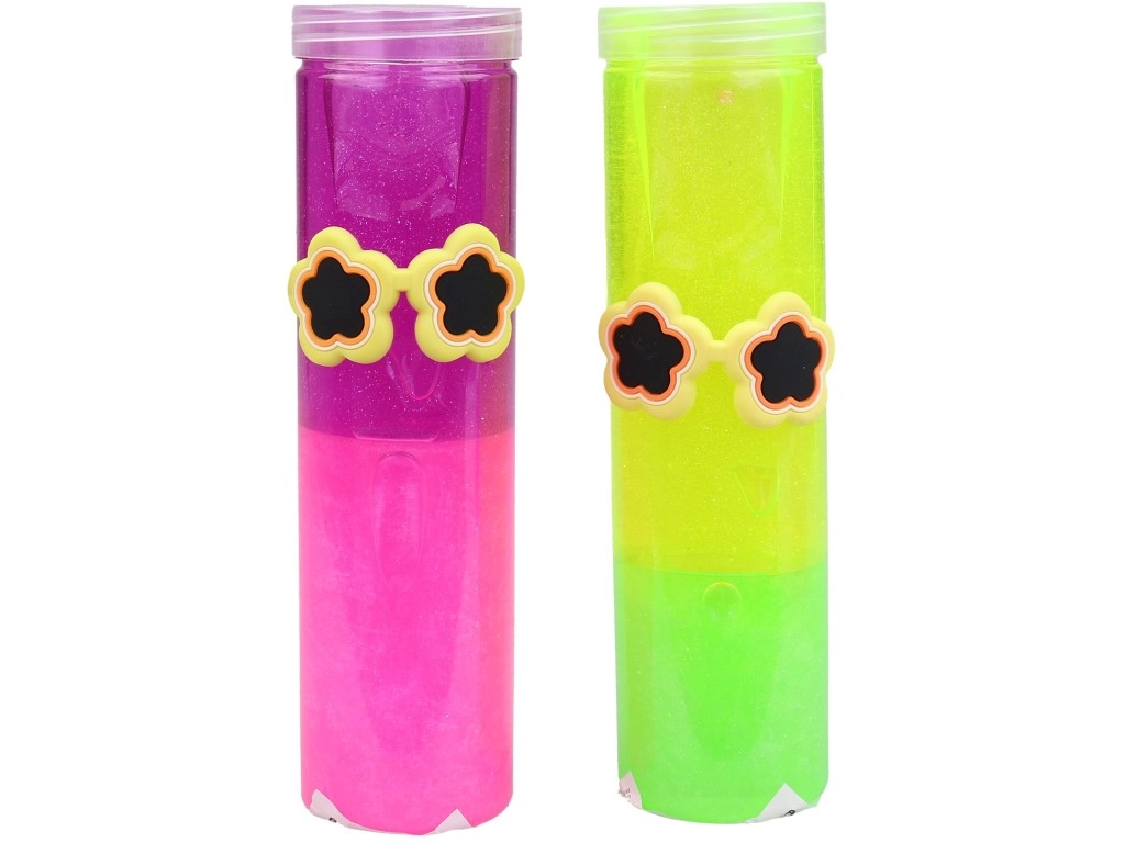 Praktyczna tuba o wysokości ok. 19 cm i średnicy 5,5 cm zapobiega wysychaniu i utrzymuje slime w czystości. Niektóre warianty są ozdobione drobnymi klipsami i motywami (np. okulary, motyl, kwiatuszek), co czyni go jeszcze atrakcyjniejszym prezentem. Idealny jako mały upominek, nagroda lub zabawa w podróży.