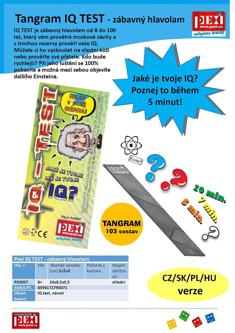 Szukasz wciągającego prezentu lub aktywności w podróży? Tangram IQ test jest kompaktowy, łatwy do zrozumienia i za każdym razem stawia inne wyzwanie. Doskonały wybór dla wszystkich miłośników gier logicznych i łamigłówek.