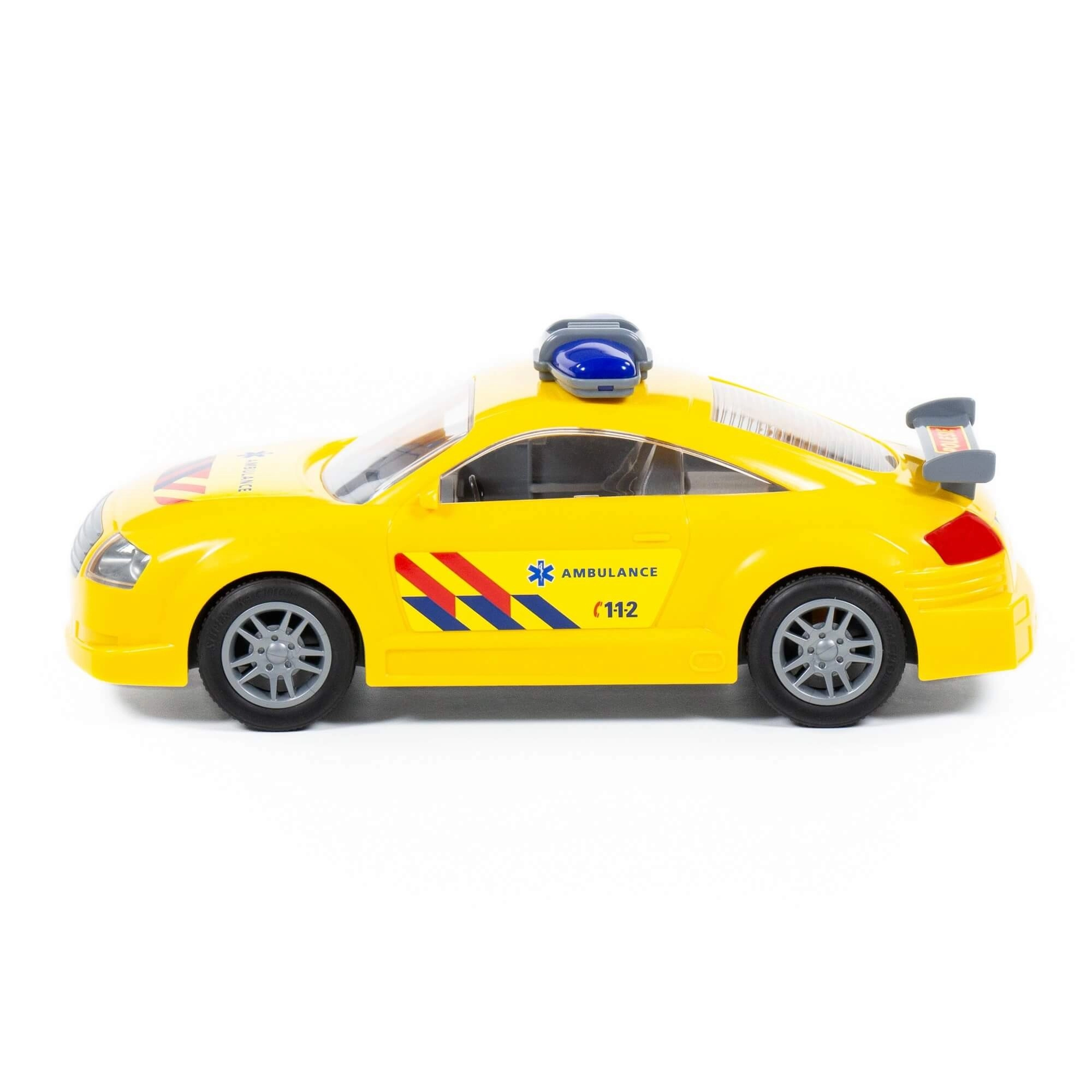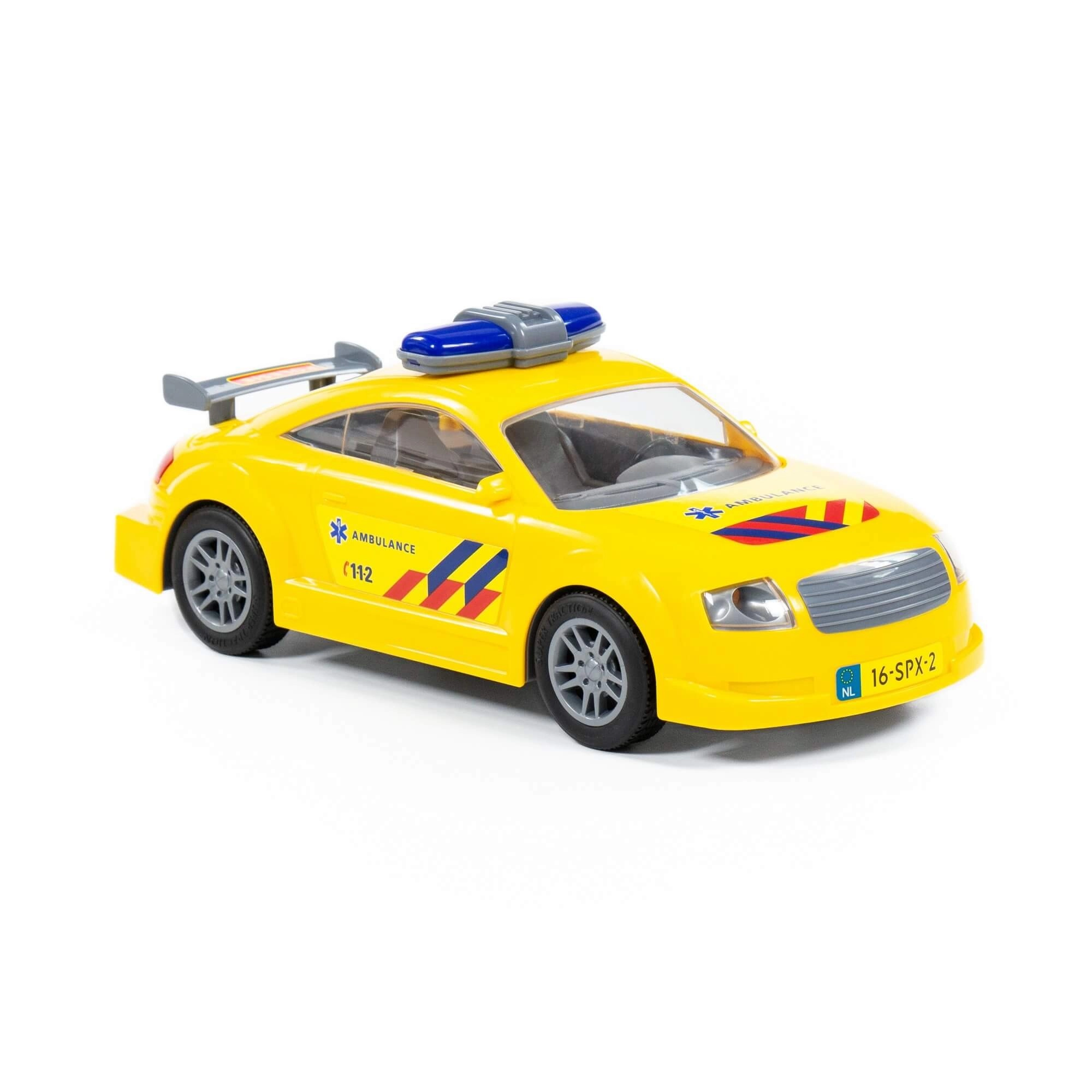 Żółty plastikowy pojazd ratunkowy na napęd cierny zapewnia dzieciom dynamiczną zabawę pełną akcji ratunkowych. Wystarczy go popchnąć, a dzięki napędowi ciernemu sam ruszy do przodu. Wytrzymałe wykonanie, wyraźne napisy AMBULANCE oraz numer 112 wspierają wyobraźnię i realistyczną zabawę w ratowników w domu i na zewnątrz.