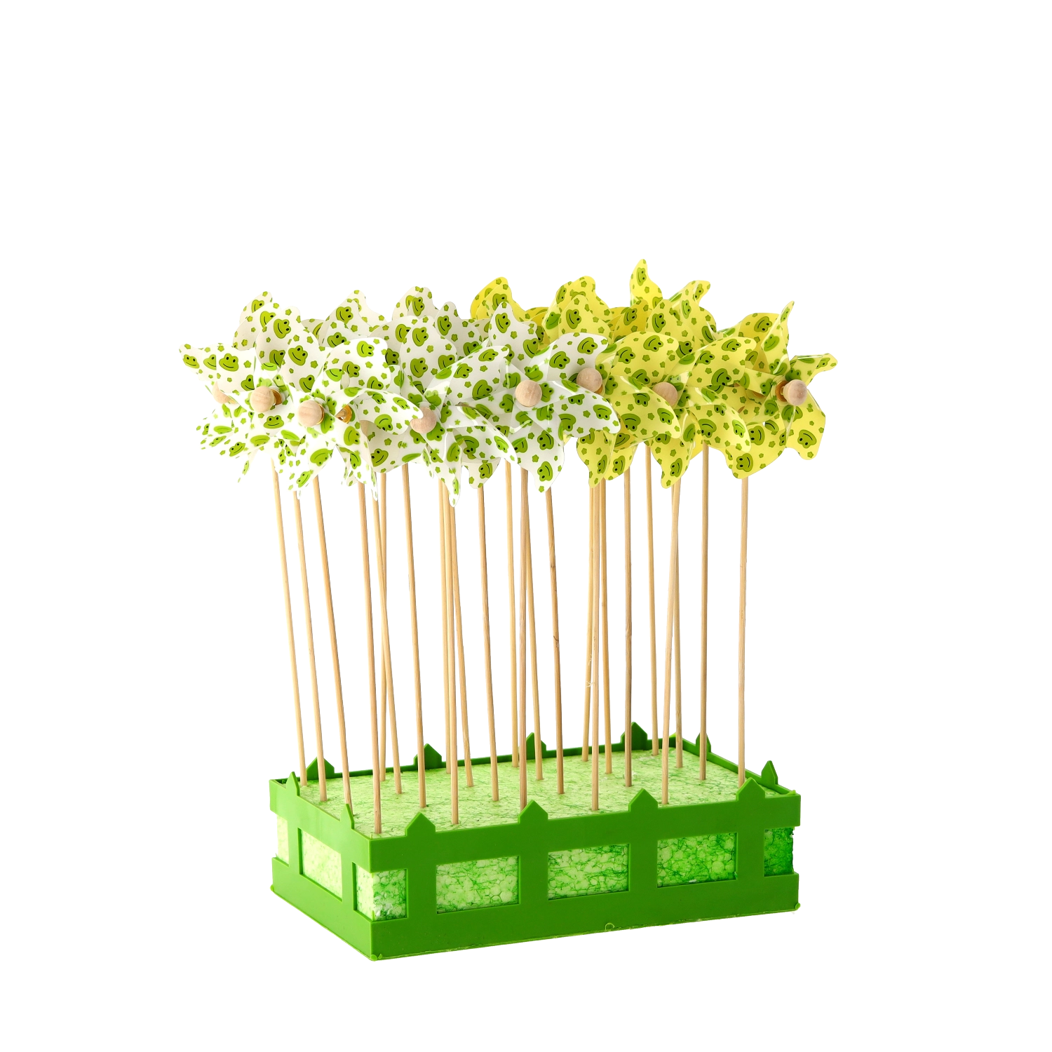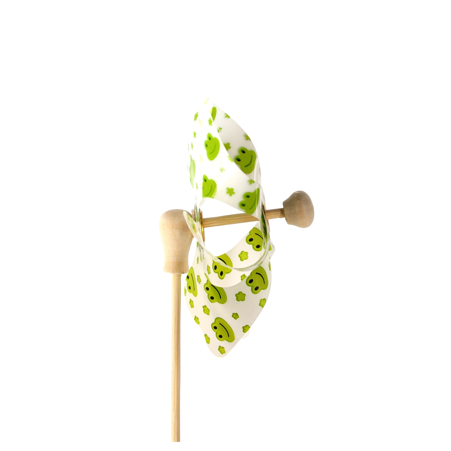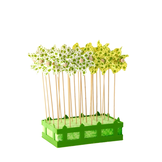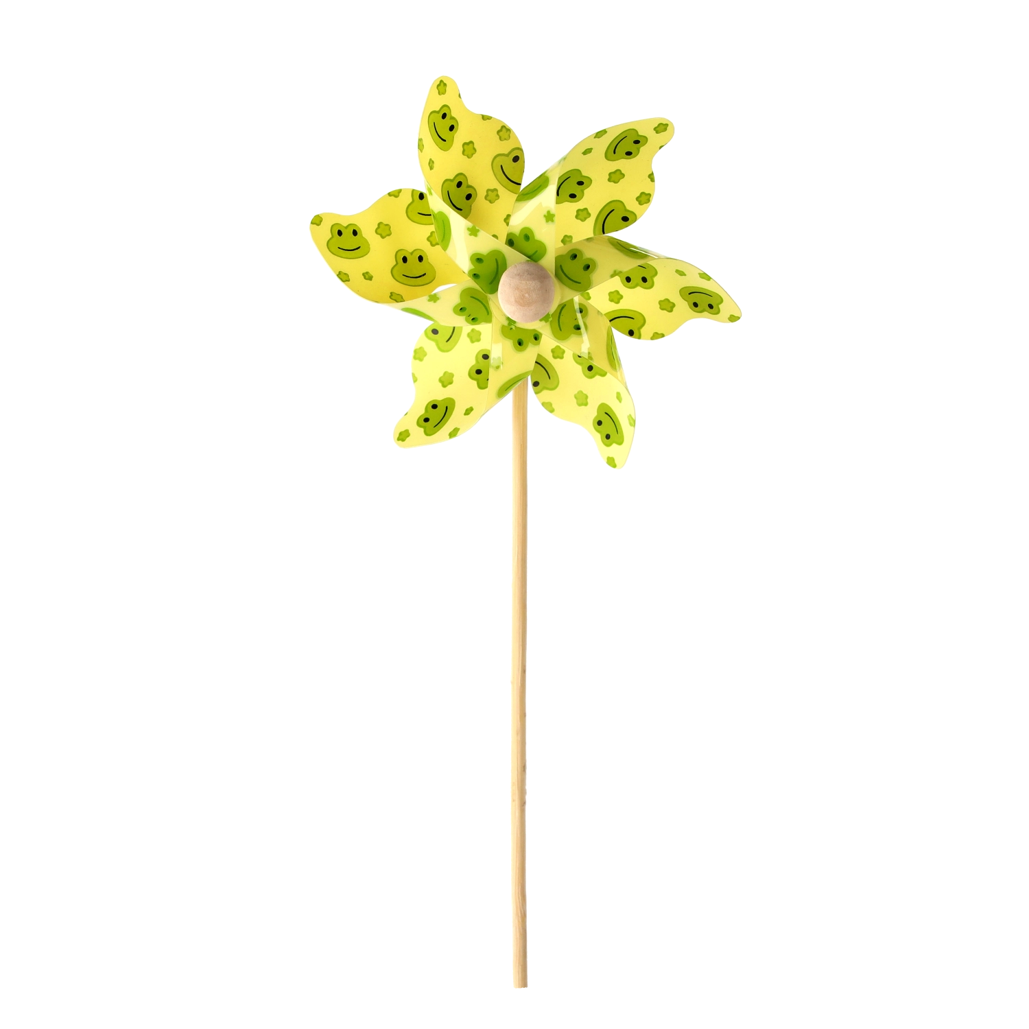 Wiatraczek z żabkami to urocza dekoracja dla dzieci i dorosłych. Dzięki lekkim łopatkom z PVC łatwo się obraca nawet przy lekkim wietrze i dodaje przestrzeni ruchu, koloru i radości. Naturalny bambusowy patyk zapewnia stabilność i przyjemny wygląd.