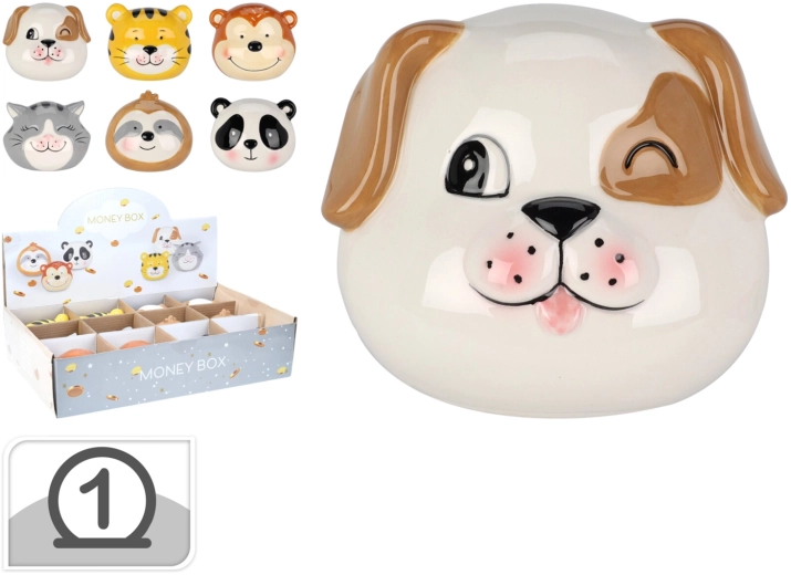 Wspieraj nawyki finansowe dzieci w stylowy sposób. Ta ceramiczna skarbonka w kształcie ulubionych zwierzątek (pies, leniwiec, małpka, kot, panda, tygrys) to świetny prezent, który łączy zabawę i naukę. Dzięki kompaktowym wymiarom 8,5 × 7 cm z łatwością zmieści się na półce, biurku czy stoliku nocnym.