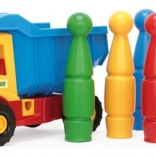 Ciężarówka wywrotka Multi Truck z ruchomą skrzynią ładunkową oferuje rozrywkę dla naszych małych pociech. Zestaw zawiera kręgle z 5 kolorowymi kręglami i kulą.