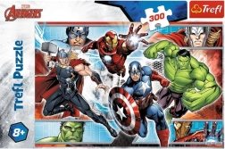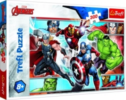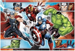 Układanka przedstawia ulubione postacie Avengers, takie jak Thor, Iron Man, Captain America i Hulk.