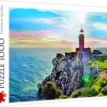 Stwórz piękną scenę z latarnią na greckim wybrzeżu dzięki tym puzzlom. Po ułożeniu obraz ma wymiary 68x48 cm. Dzięki papierowi kalandrowanemu puzzle cechują się wysoką jakością, a bezpieczeństwo podczas układania zapewniają ekologiczne farby.