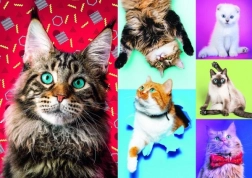 Wysokiej jakości puzzle zachwycą nie tylko fanów tych układanek. Piękny motyw przedstawia Szczęśliwe koty. Puzzle składają się z 1000 elementów, w pudełku. Rozmiar ułożonego obrazka to 68,3 x 48 cm.
