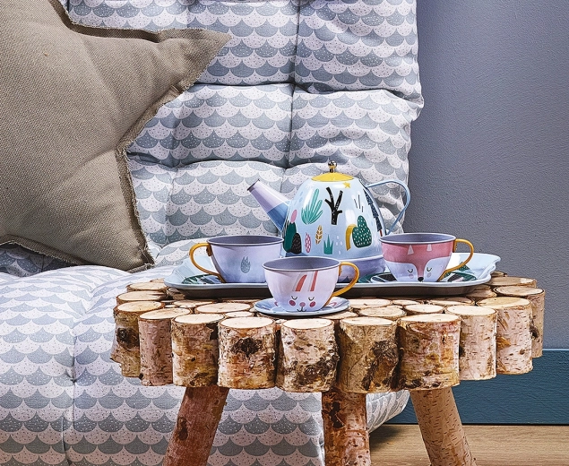 Duża taca do serwowania, filiżanki ze spodkami i talerzyki deserowe pozwolą dzieciom ugościć rodzinę i przyjaciół jak profesjonaliści.