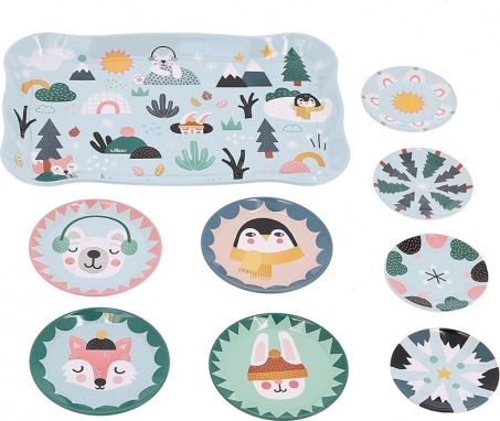 W opakowaniu znajdziesz wszystko na doskonały podwieczorek: dużą tacę do łatwego serwowania, 4 filiżanki ze spodkami, 4 talerzyki deserowe oraz dzbanek z pokrywką. Elementy są lekkie, trwałe i łatwe w utrzymaniu. Projekt Michelle Carlslund z przyjaznymi zwierzętami pobudza dziecięcą wyobraźnię i subtelnie rozwija umiejętności społeczne podczas wspólnej zabawy.