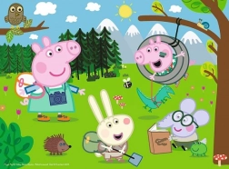 Puzzle Leśna wyprawa Peppa Pig są inspirowane popularnym animowanym serialem dla dzieci Peppa Pig. Ta duża układanka z mocnego kartonu została stworzona specjalnie dla najmłodszych dzieci. Żywe kolory i piękne wzory zwierzątek zachęcają dzieci do zabawy.