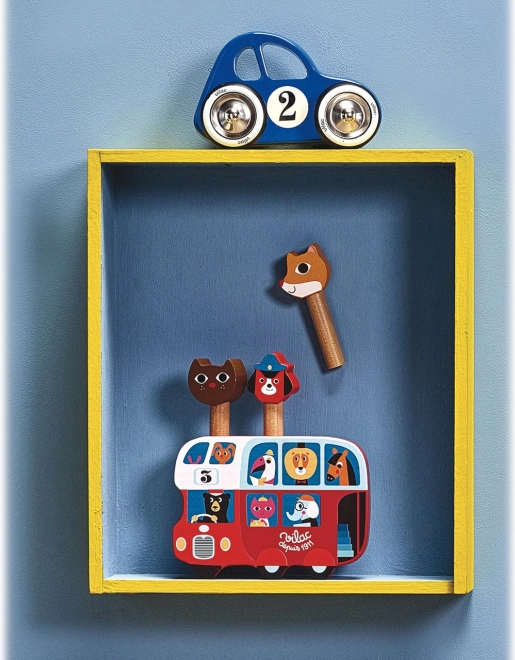 Drewniana gra wyrzutnia Autobus ze zwierzątkami