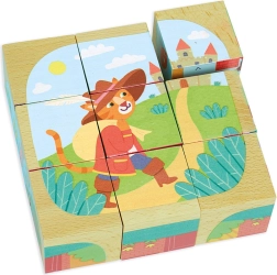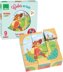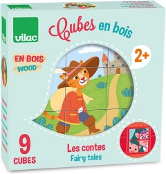 Drewniane klocki Vilac Historie przynoszą dzieciom radość odkrywania i układania. Z dziewięciu solidnych klocków ułożysz sześć różnych bajkowych motywów, które rozwijają wyobraźnię i uczą dzieci koncentracji. Dzięki solidnemu drewnu i wysokiej jakości nadrukowi zabawka jest trwała i odpowiednia do codziennej zabawy.