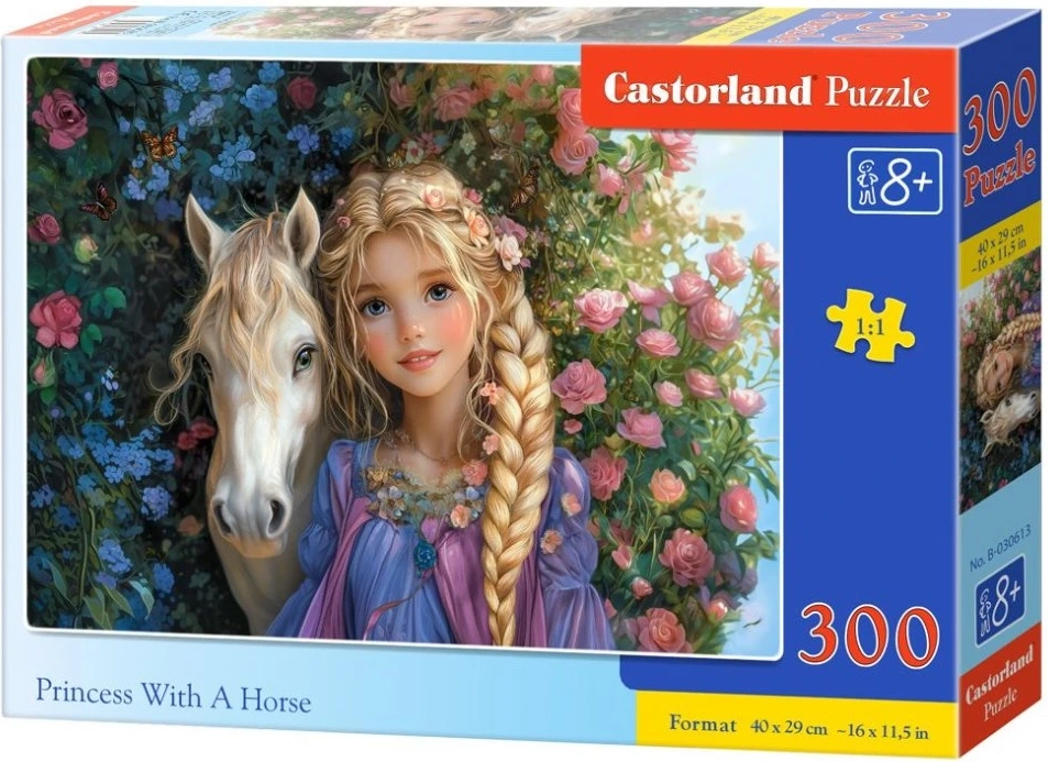 Odkryj magię baśniowego świata z puzzlami CASTORLAND. Układanka z motywem księżniczki i konia oferuje 300 elementów na przyjemne rodzinne chwile i trening cierpliwości. Po ułożeniu puzzle mają wymiary ok. 40 × 29 cm – idealny rozmiar do oprawienia lub wyeksponowania w pokoju dziecięcym.