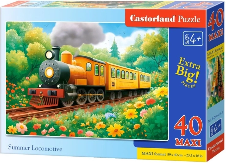 Podłogowe puzzle Castorland z wesołym motywem lokomotywy latem to świetny wybór dla małych konstruktorów. Duże elementy MAXI gwarantują bezpieczne i wygodne układanie, dzięki czemu puzzle są odpowiednie dla dzieci, które dopiero zaczynają swoją przygodę z tą zabawą. Po ułożeniu powstaje kolorowy obrazek o wielkości ok. 59 × 40 cm, idealny do zabawy na podłodze.