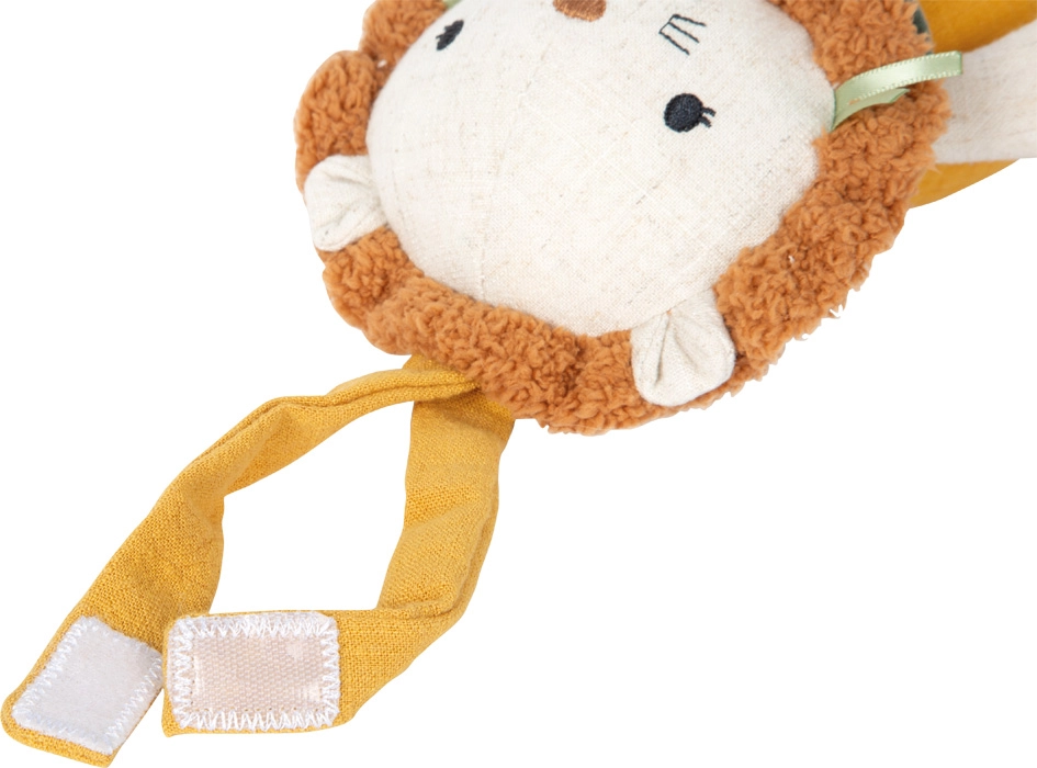 Dzięki praktycznej pętli zabawkę szybko przymocujesz do łóżeczka, wózka lub przewijaka – lew jest zawsze pod ręką.