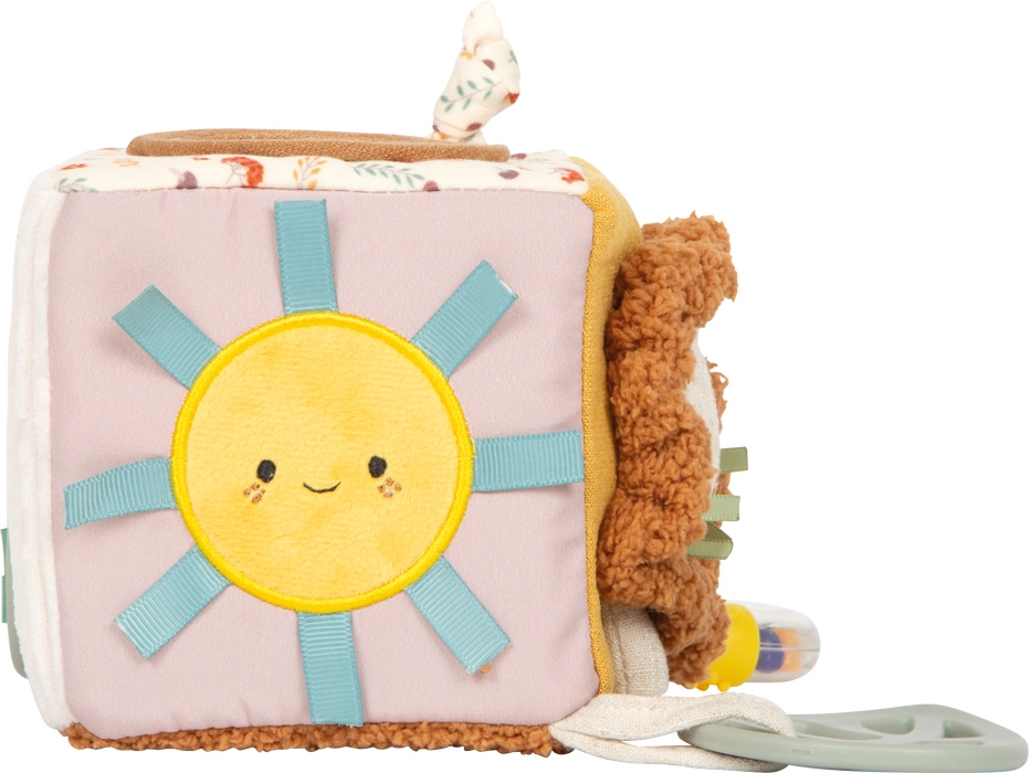 Odkrywaj świat zmysłów z tą miękką, aktywizującą kostką dla niemowląt z sympatycznym lwiątkiem. Oferuje szeleszczące elementy, dzwoneczek, grzechotkę i gryzak dla zabawy i ukojenia, rozwija małą motorykę, dotyk i słuch. Dzięki praktycznej pętli łatwo przymocujesz ją do wózka lub fotelika samochodowego. Miękkie wypełnienie i kompaktowy kształt zapewniają bezpieczną i przyjemną zabawę już od urodzenia.