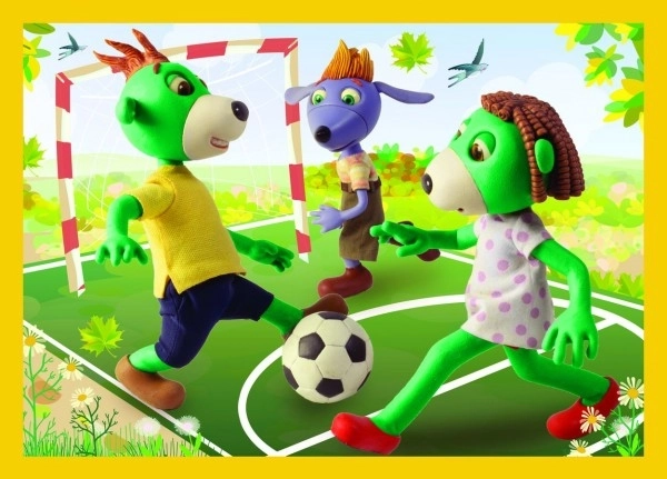 Spraw radość dzieciom kolorowym zestawem 4 niezależnych puzzli z motywami ulubionego serialu Rodzina Treflików. Każdy obrazek ma inną liczbę elementów, dzięki czemu zadowoli zarówno początkujących, jak i nieco bardziej zaawansowanych miłośników układanek. Dzięki specjalnemu papierowi, który odbiją światło, elementy lepiej się wyróżniają, a układanie jest przyjemniejsze.