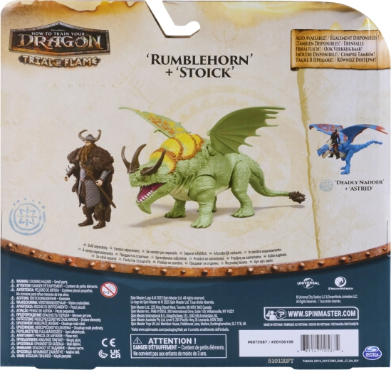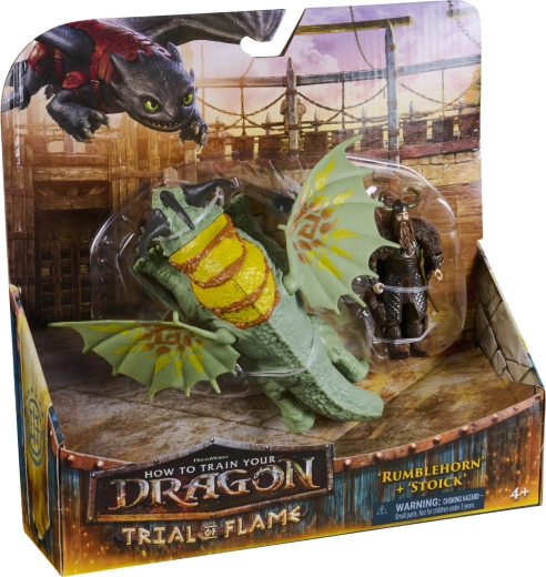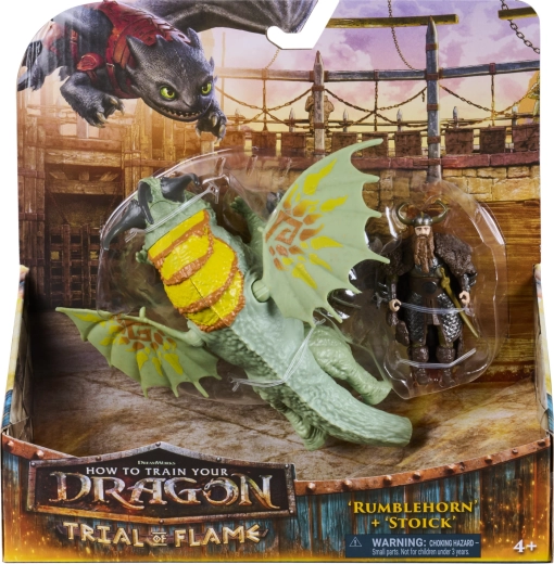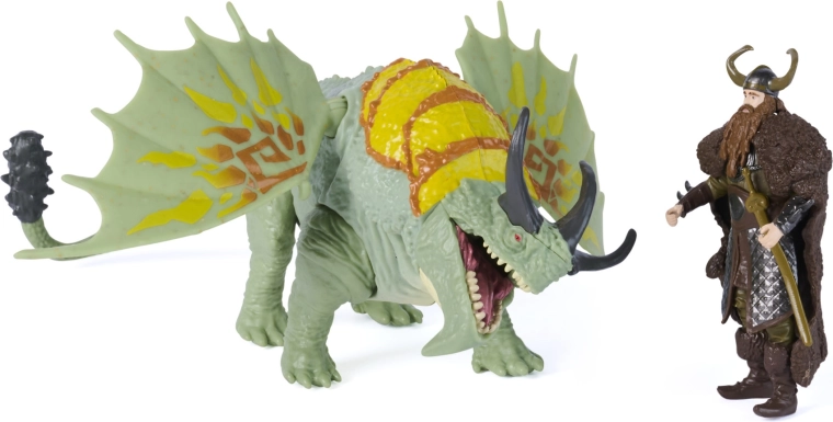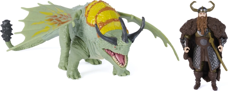 Wejdź do świata wikingów i smoków. Zielono–turkusowy smok Rumblehorn z wzorzystymi membranowymi skrzydłami i wyrazistymi rogami zachwyca wykonaniem, a Stoick w ikonicznej zbroi jest gotów ruszyć do akcji. Figurki ucieszą kolekcjonerów i dzieci, które kochają dynamiczne opowieści oraz odtwarzanie scen z filmu How to Train Your Dragon.